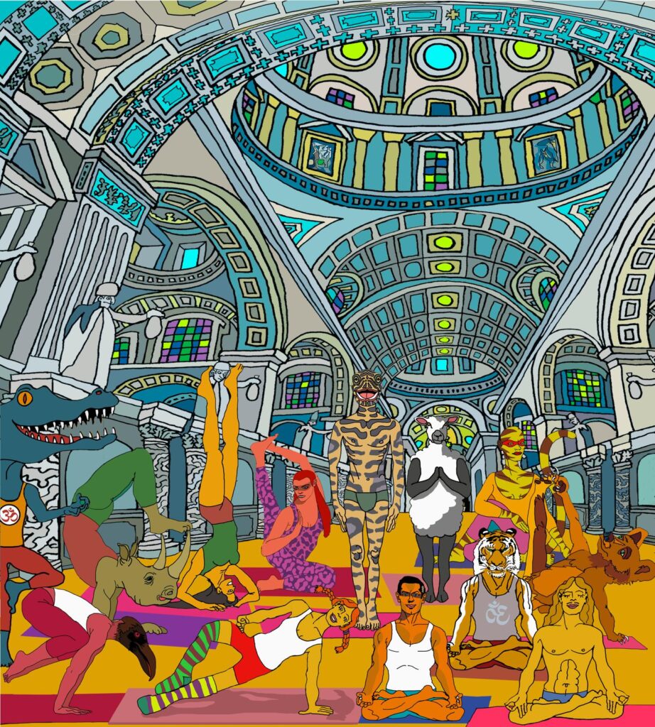 Näiden aamujen ajatuksena on kokoontua saman sinisen holvikaton alle, harjoittelemaan yksin ja kuitenkin yhdessä.